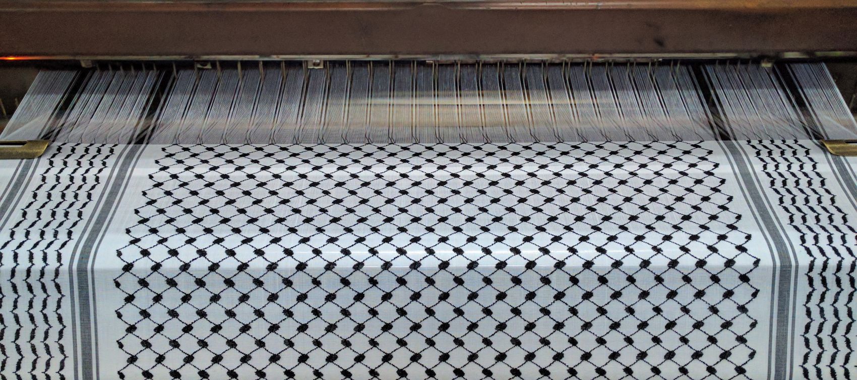 Hirbawi factory produces the Kufiya which is the quintessential patterned scarf worn in the Middle East.