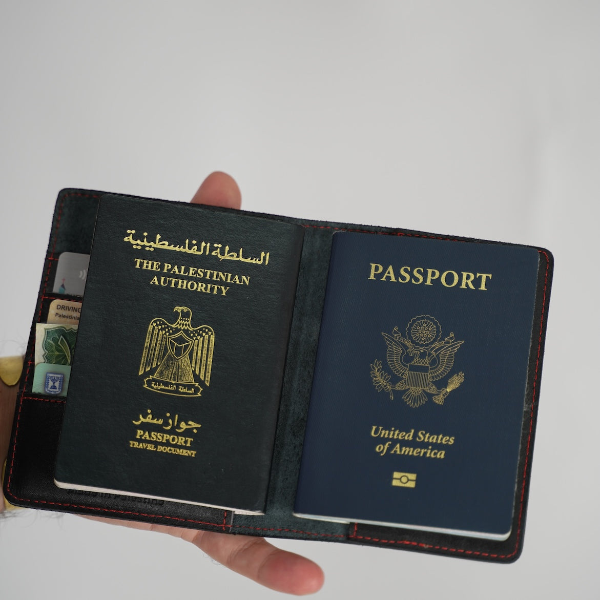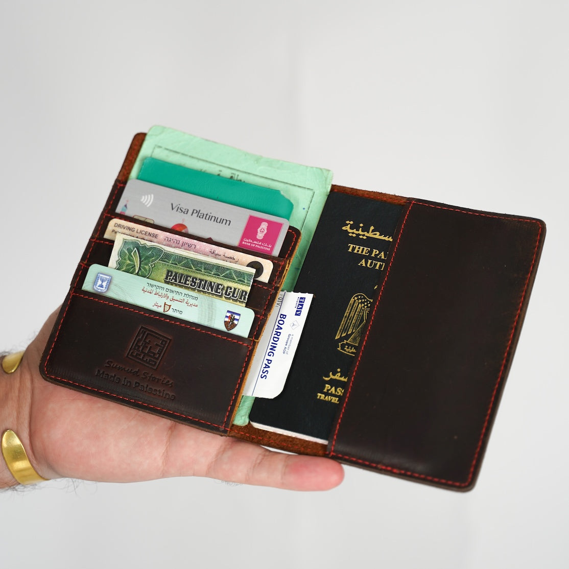 Crafted from genuine full-grain leather in Palestine, the Safar Freedom Passport Holder is designed for both style and functionality. Featuring a primary compartment to securely fit your passport, four dedicated card slots, and an additional open section for travel documents, cash, or even a second passport, it’s the ideal companion for your journeys.