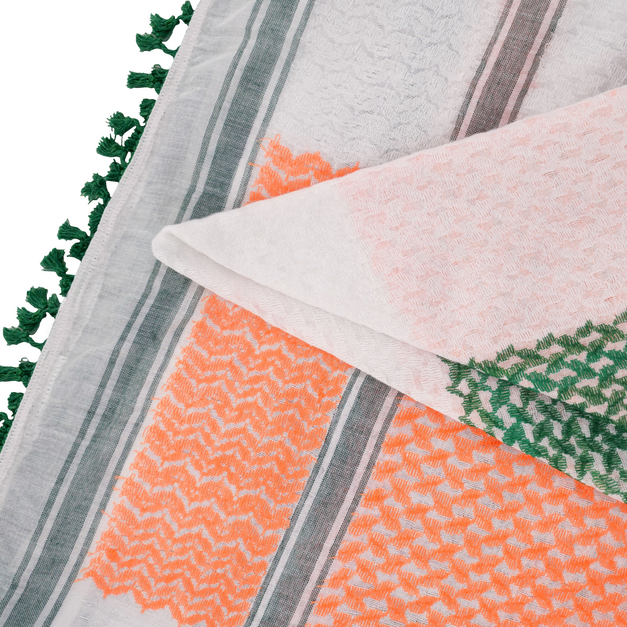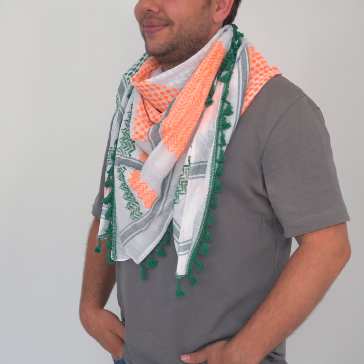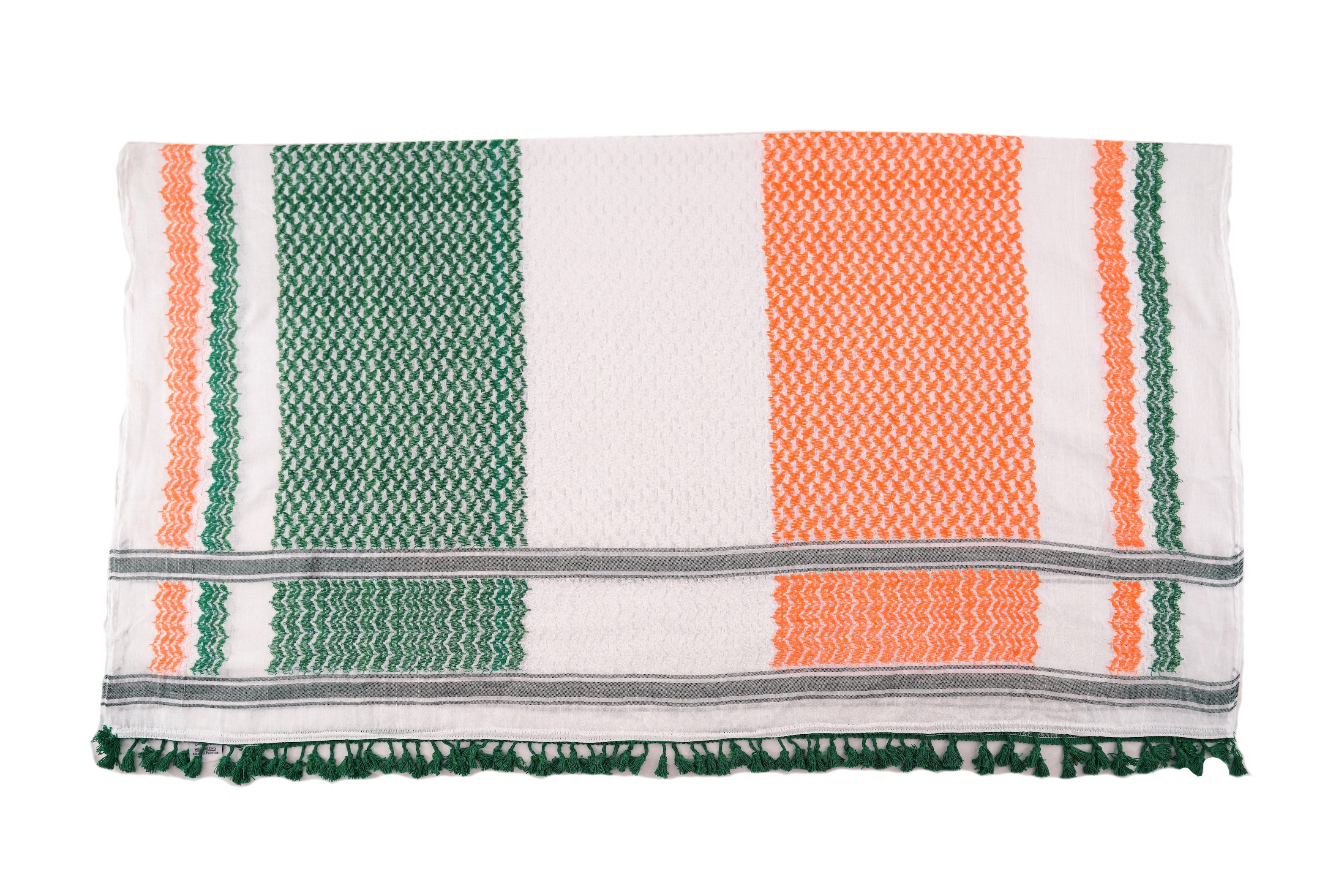 The Hirbawi Saoirse Kufiya is a traditional Palestinian headscarf, made by the renowned Hirbawi factory in the West Bank. The name "Saoirse" means "freedom" in Irish and is a symbol of solidarity between the Palestinian and Irish people, who share a history of struggle for independence and self-determination.