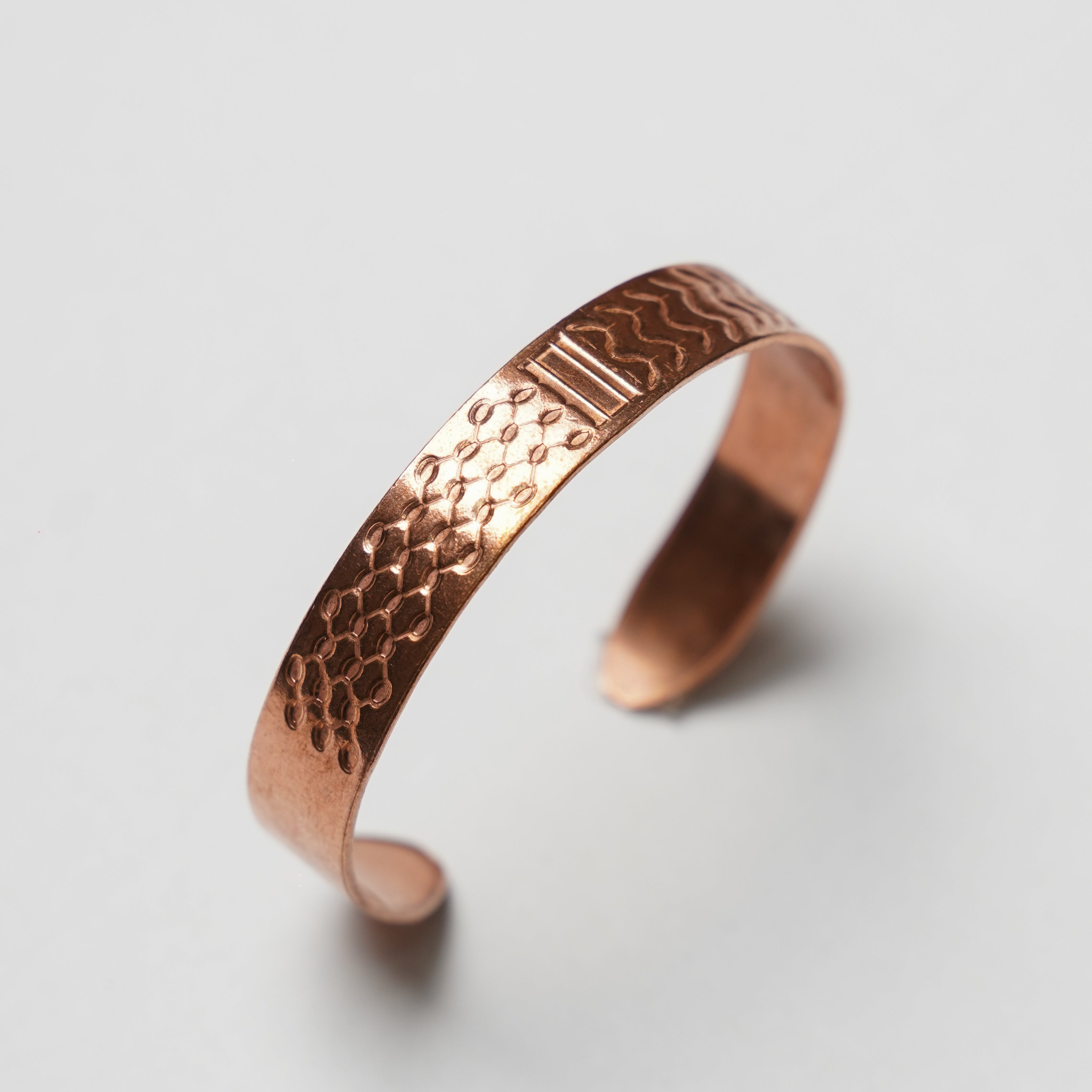 The Copper Kufiya Bracelet is sturdy and striking. I loved watching the Youtube video of them being made.