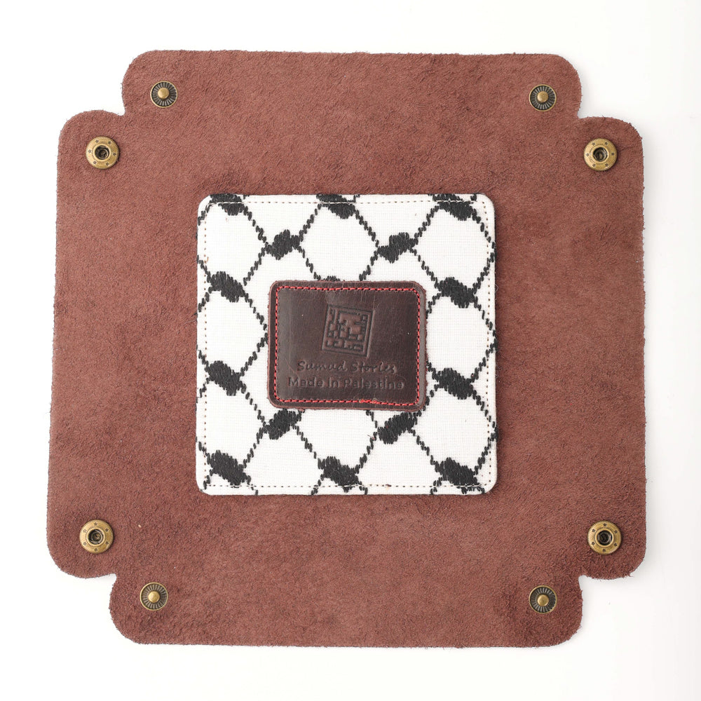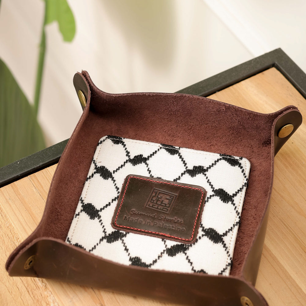 Handcrafted Leather Tray with Kufiya Fabric – Made in Palestine 🇵🇸