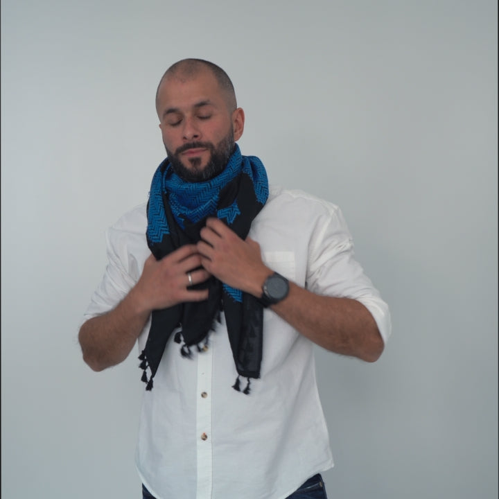 The design of this Kufiya is inspired by Yafa (Jaffa), located at the Mediterranean Sea. The name Yafa means beauty in Canaanite, and the city's charm makes you fall in love with it immediately - exactly like this Kufiya.